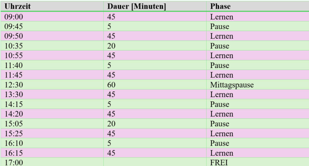 Ich rufe mir wieder vor Augen: Zeit ist nicht gleich Leistung, irgendwann geht die Kurve wieder nach unten und je länger ich lerne und über meine Bedürfnisse hinweggehe, desto schlechter kann ich mich konzentrieren und desto eher lenke ich mich ab und habe keine Lust und Energie mehr. Das will ich möglichst vermeiden. Dafür war dieser Plan früher super. Und darf es gerne wieder werden.