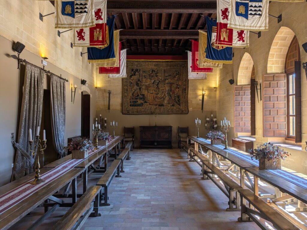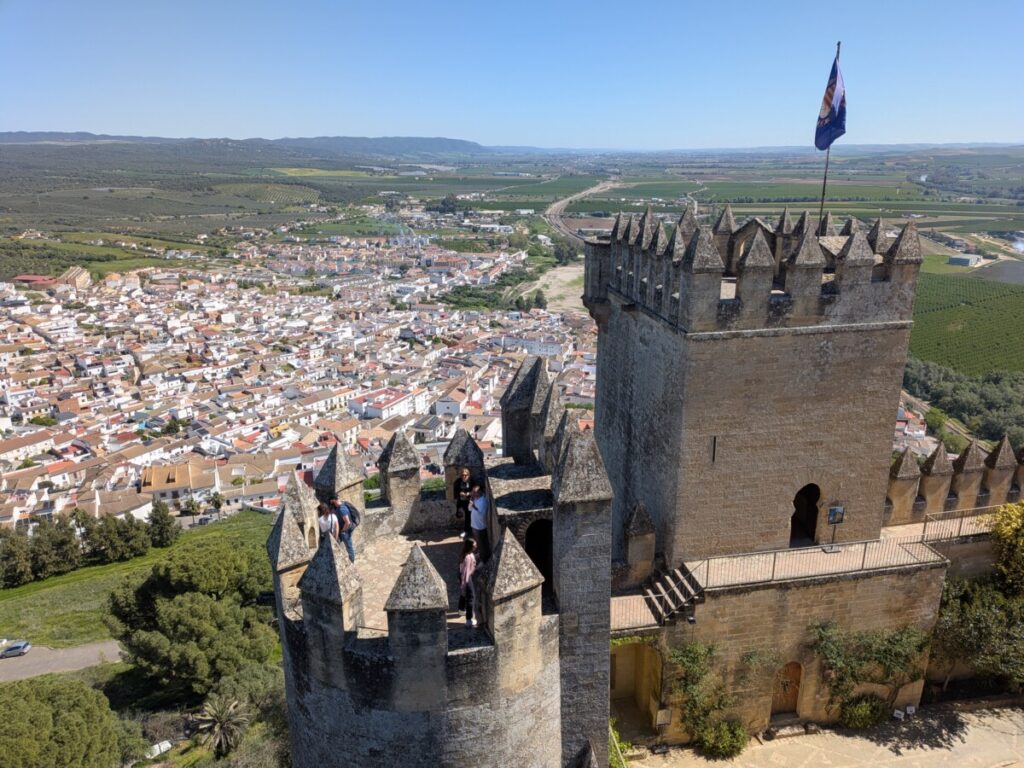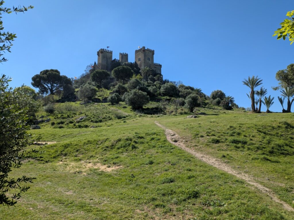 Unser Mietwagen ist ein weißer Van. Nach 1,5 Stunden Fahrt erreichen wir den ersten Zwischenstopp: Das Castillo de Almódovar del Rio. Wir erfahren erst dort, dass die wiederaufgebaute Burg ein Drehort von „Game of Thrones“ war und gehen genau dort entlang, wo Jaime Lennister vor uns langlief. Wir pflücken eine Olive, aus der kirschroter Saft quillt, noch nicht reif. Im Kerker liegen Skelette – bestimmt Attrappen.