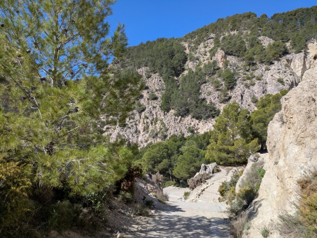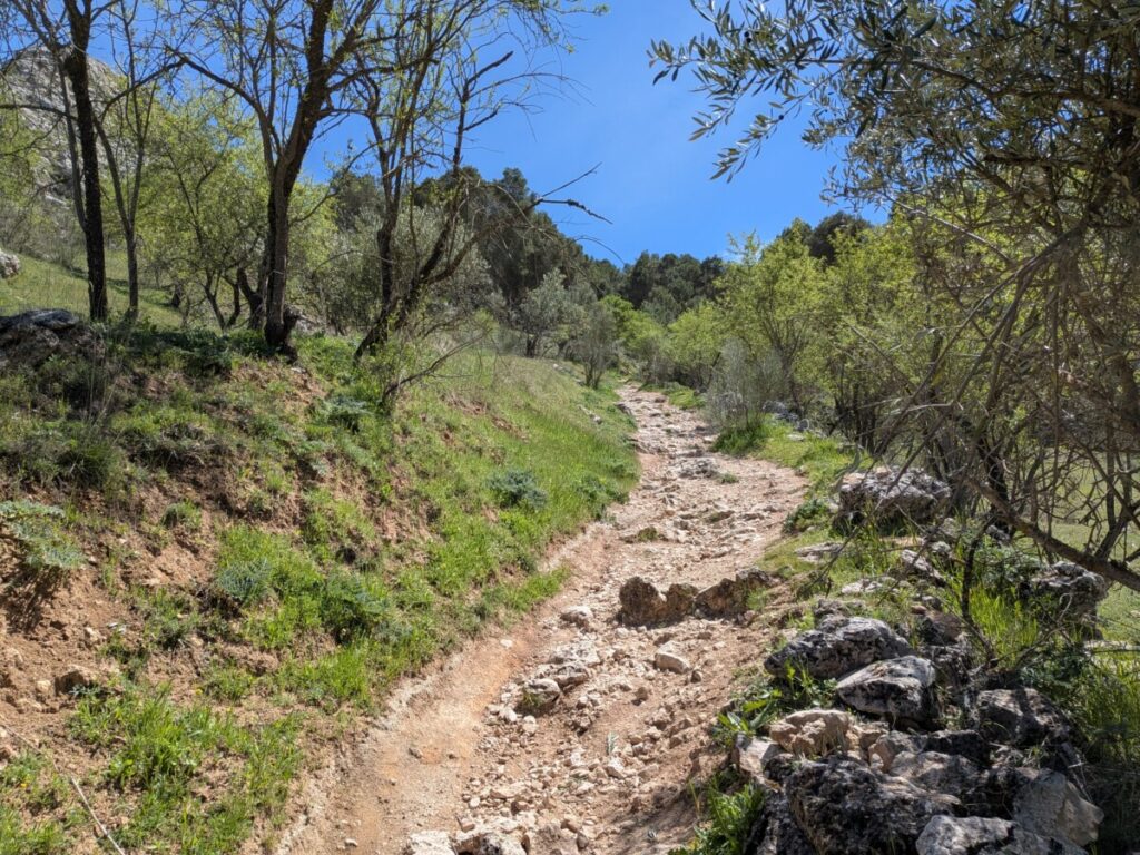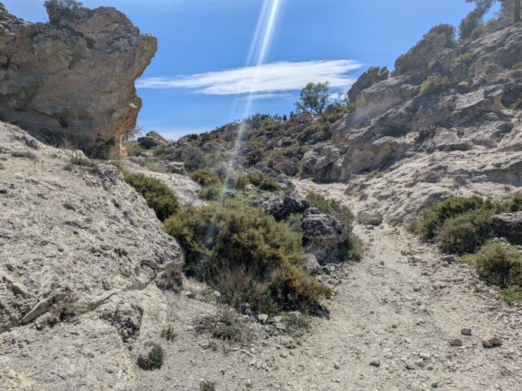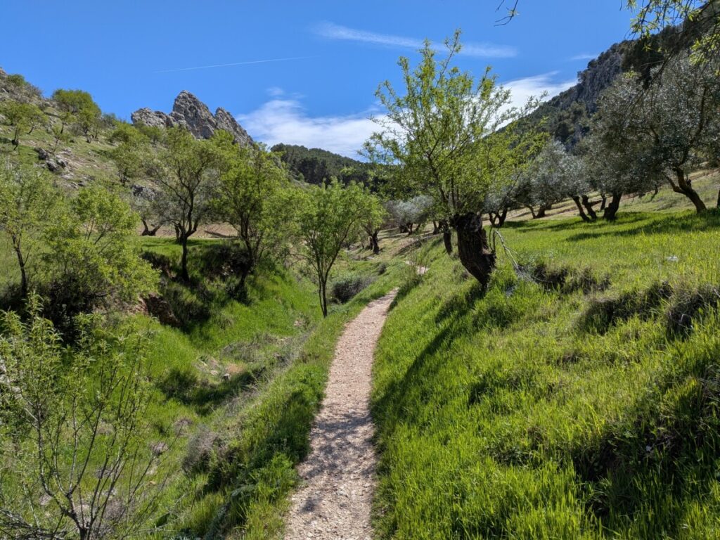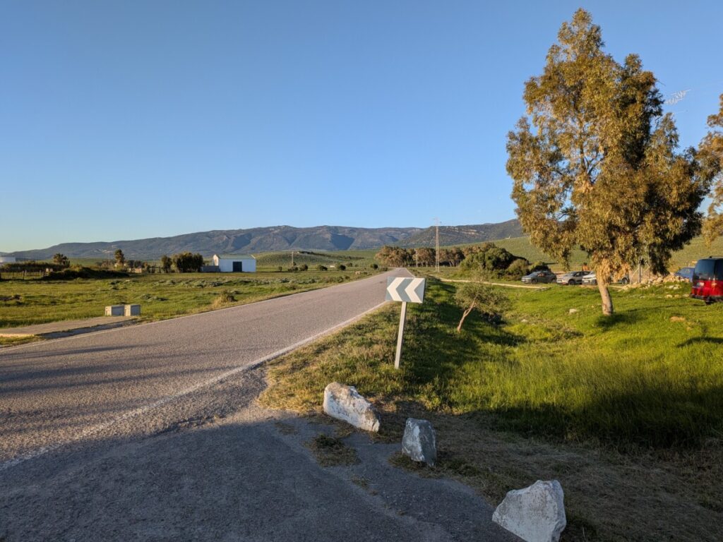 Zuerst fahren wir zum Supermarkt, um Wasser und Snacks zu holen. Dann zu zwei Restaurants, die laut Google geöffnet, in echt aber geschlossen sind, und wieder zum Mercadona, der mit einem reichhaltigen Angebot (Spaghetti Carbonara, Bolognese etc.), Mikrowellen, Plastikbesteck und einer Restaurantecke ausgestattet ist. So haben wir ein günstiges Abendessen (ein echter Geheimtipp, zumal es Mercadonas mit Küchenecken überall in Andalusien gibt, wie sich herausstellen wird!). Außerdem finden wir in den großen Supermärkten immer eine Toilette, was man von anderen Orten nicht behaupten kann.