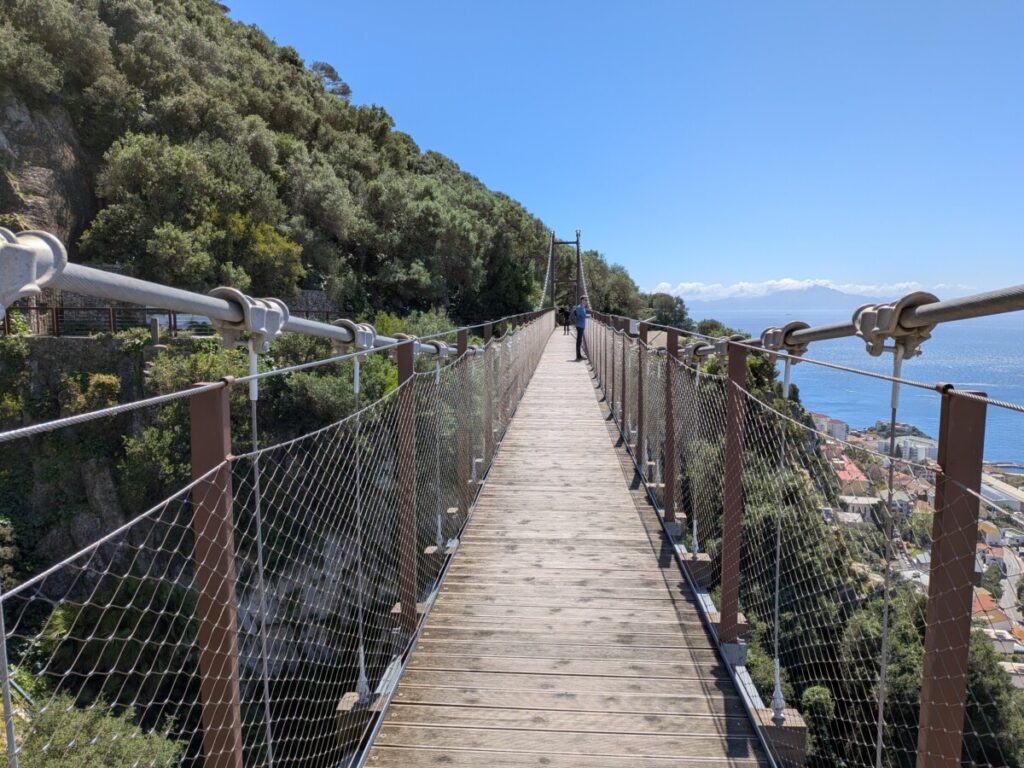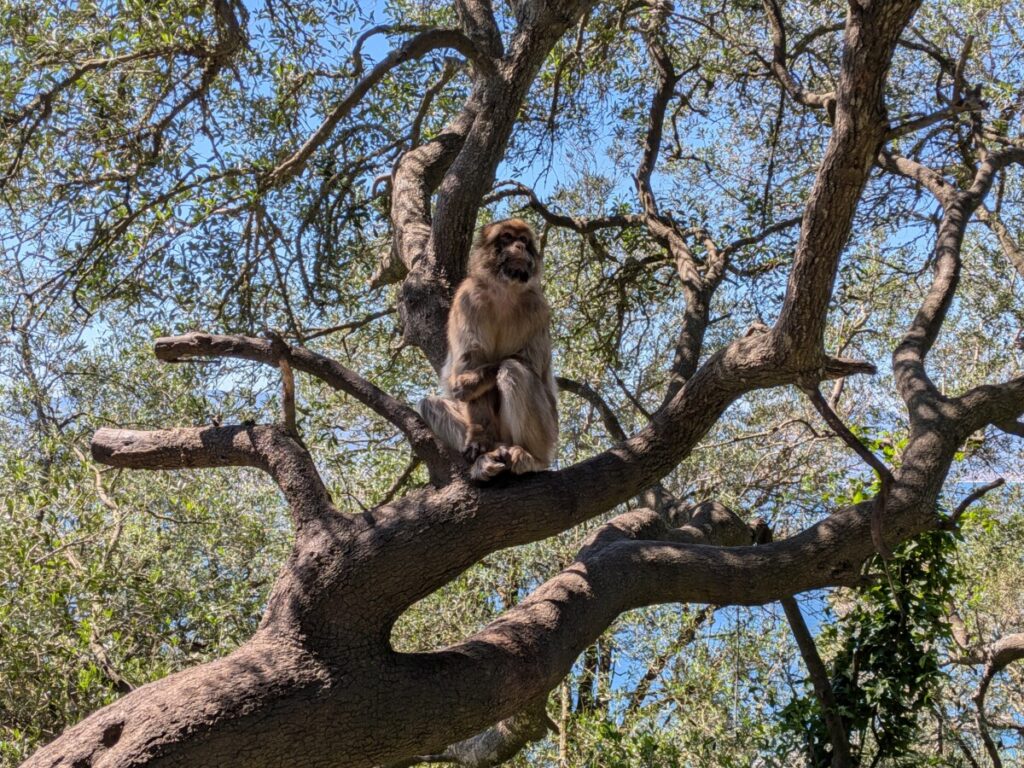 Der Aufstieg ist hart. Es geht über eine Hängebrücke und durch eine tiefe Tropfsteinhöhle, von der früher angenommen wurde, dass sie Europa mit Afrika verbindet – als Erklärung dafür, dass die Berberaffen über das Meer hierhergekommen sind.