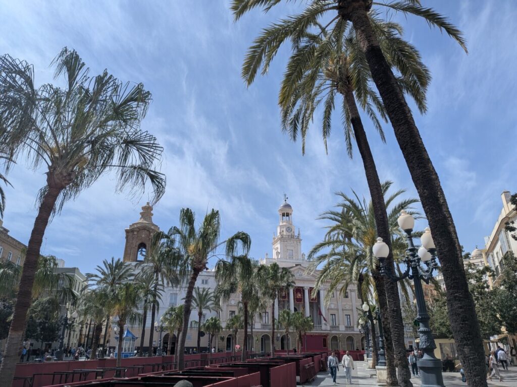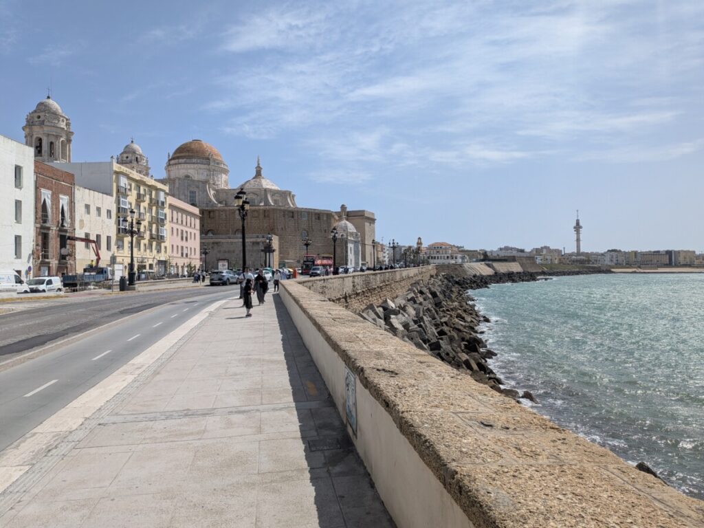 Park & Ride und mit dem Zug nach Cádiz. Coole Kathedrale, coole T-Shirt-Shops. Stadt auf einer eigenen Insel, wie Manhattan. Könnte auch Kuba sein.
